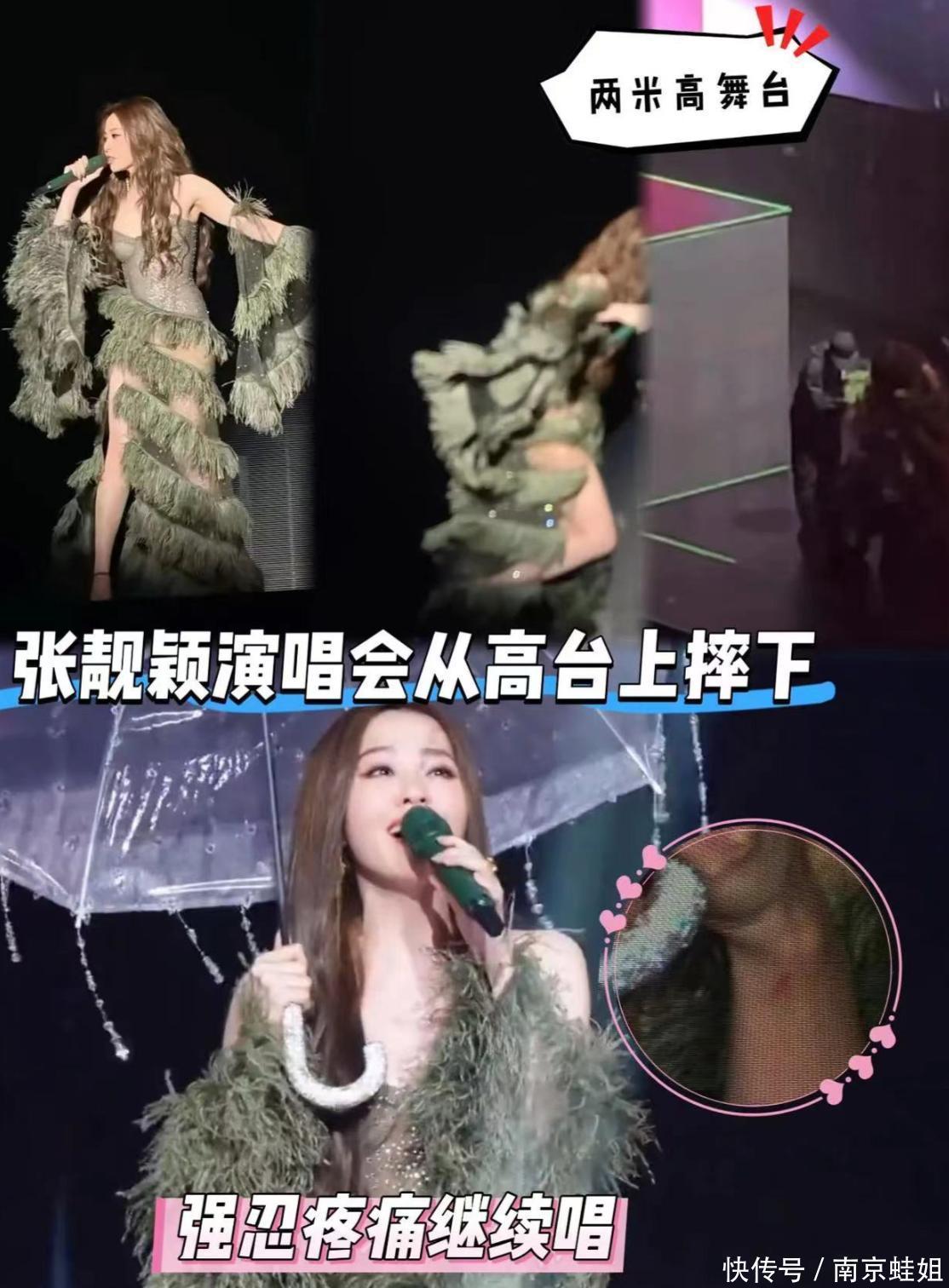 现场视频显示她臀部着地,大�秒后,张靓颖起身继续演唱,并完成了后续曲目。