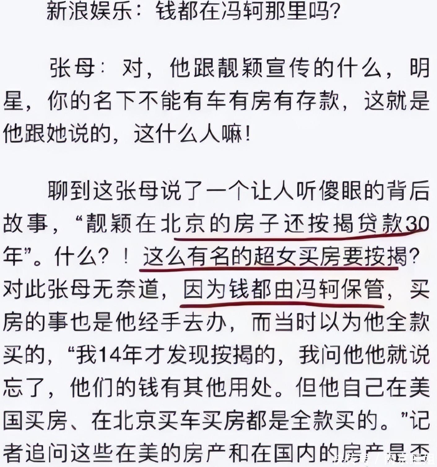 2010年,张靓颖想在北京买房,虽然年收入足以支付全款,但冯轲只同意支付三成首付,其余部分办理�年贷款。